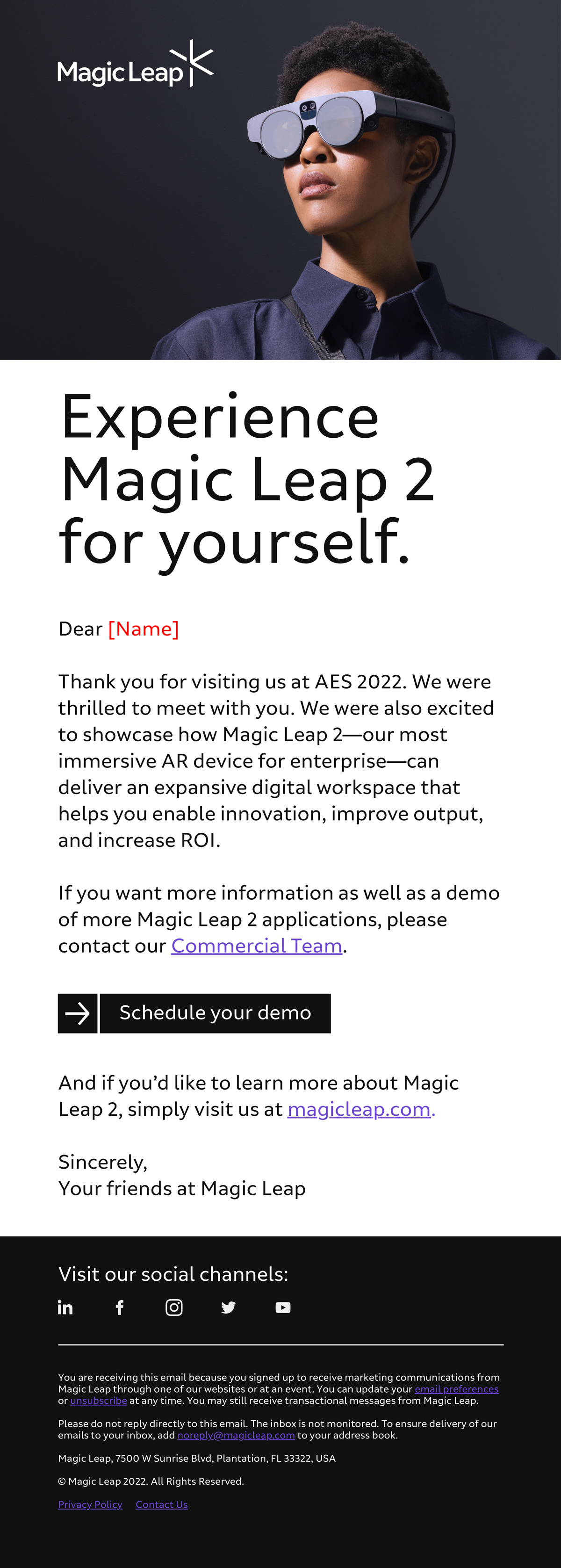 Magic Leap is the renowned developer of augmented reality (AR) headsets. Specially designed for manufacturing, healthcare, and defense industries, Magic Leap is the “most immersive AR device for enterprise.” Leading up to the launch of their latest innovation, ML2, I helped build out the brand as well as create necessary marketing/sales collateral, including videos, emails, webinars, and event support.