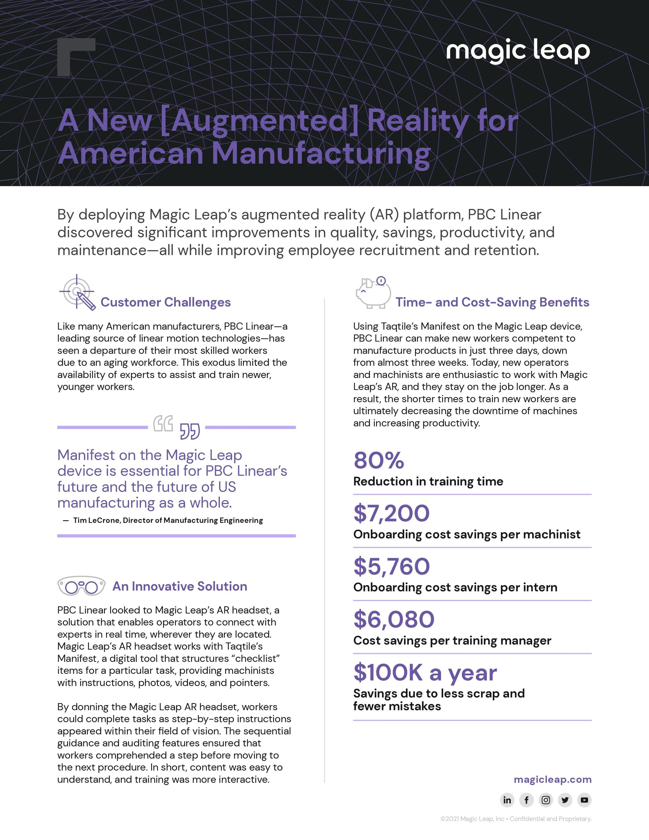 In partnership with software developer Taqtile and manufacturer PBC Linear, I helped develop this video highlighting how AR has helped American manufacturing improve training, lower costs, and attract talent.